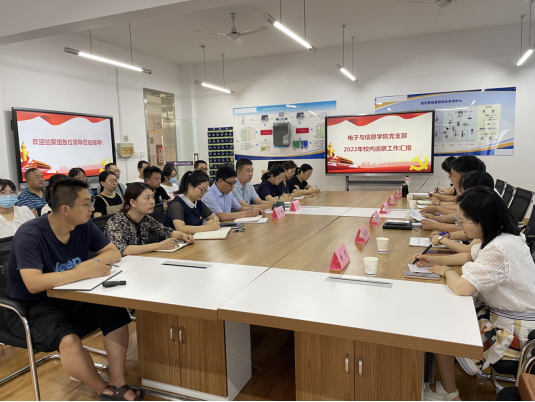 7月6日上午,校党委巡察组进驻电子与信息学院党支部开展2022年巡察工作,巡察工作汇报会在宝福路校区电子信息大楼2205举行,党委副书记、纪委书记、巡察组组长齐晓军及巡察组成员和电子与信息学院党支部及其所辖行政部门全体教职工参加,汇报会由党委委员、院长助理、巡察组副组长赵争东主持。