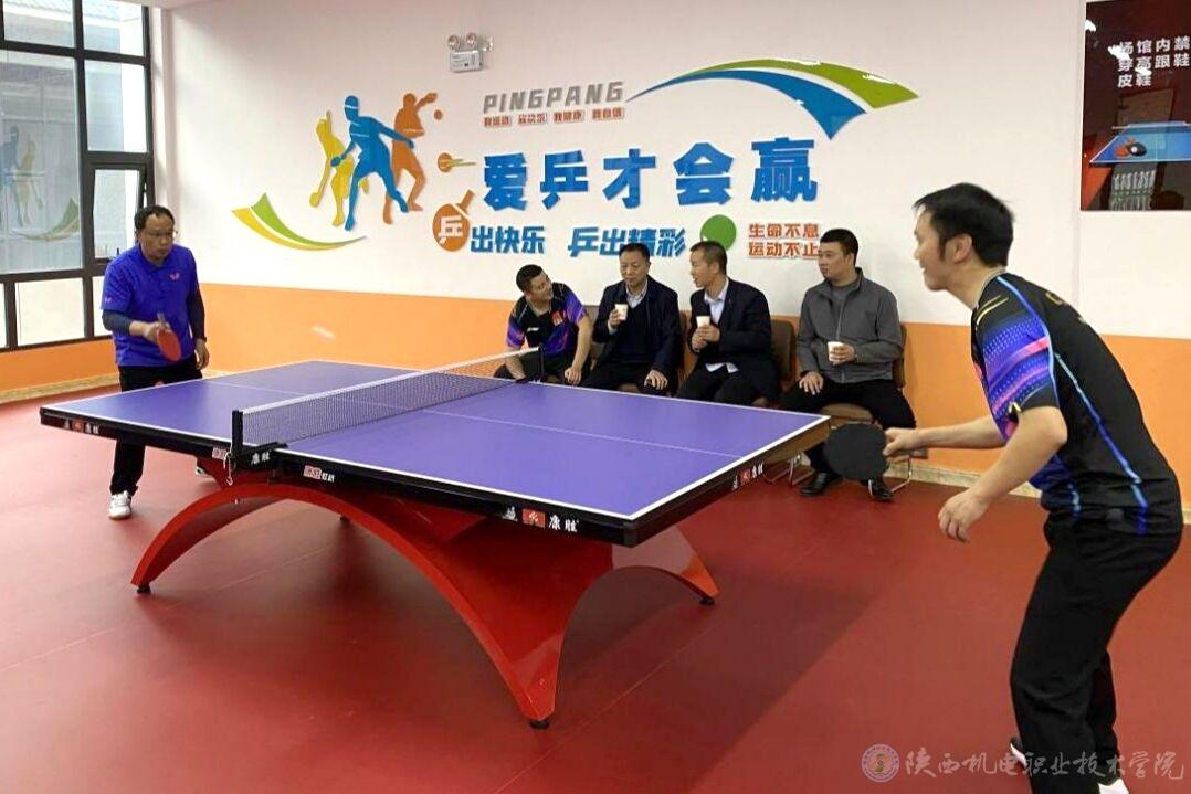 捐赠活动后,两校师生在陕西机电职院捐赠的室内乒乓球馆举行了乒乓球友谊赛。