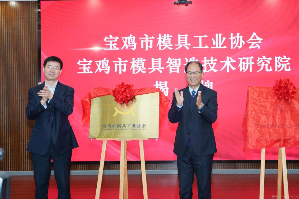 高宏真、伊逊智共同为宝鸡市模具工业协会、宝鸡市模具智造技术研究院揭牌。